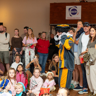 Na de aankomst stapte Sinterklaas op zijn prachtige witte paard en reed, begeleid door zijn pieten, naar de feestzaal van ACD in Ferragudo. Daar barstte het feest los met muziek, cadeautjes en blije gezichten. Elk kind werd verrast met een prachtig cadeautje én een zak vol knapperige pepernoten.